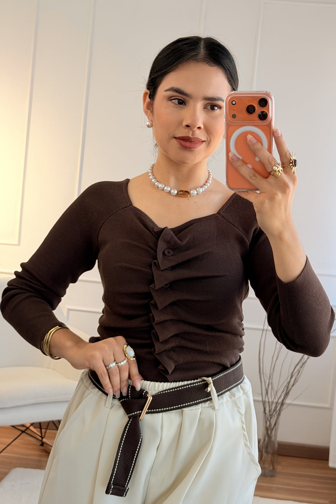 Camisola detalhes de folhos AZAKA