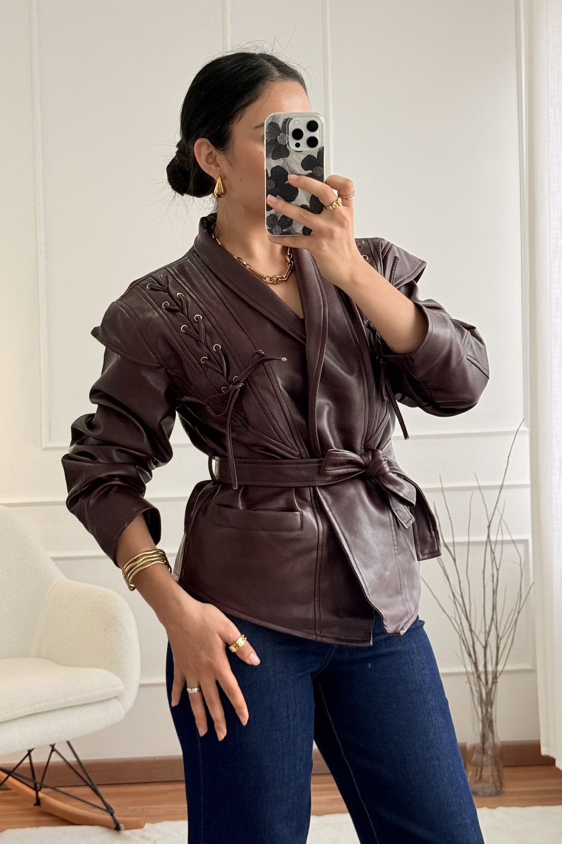 Casaco napa com cinto MOCHY