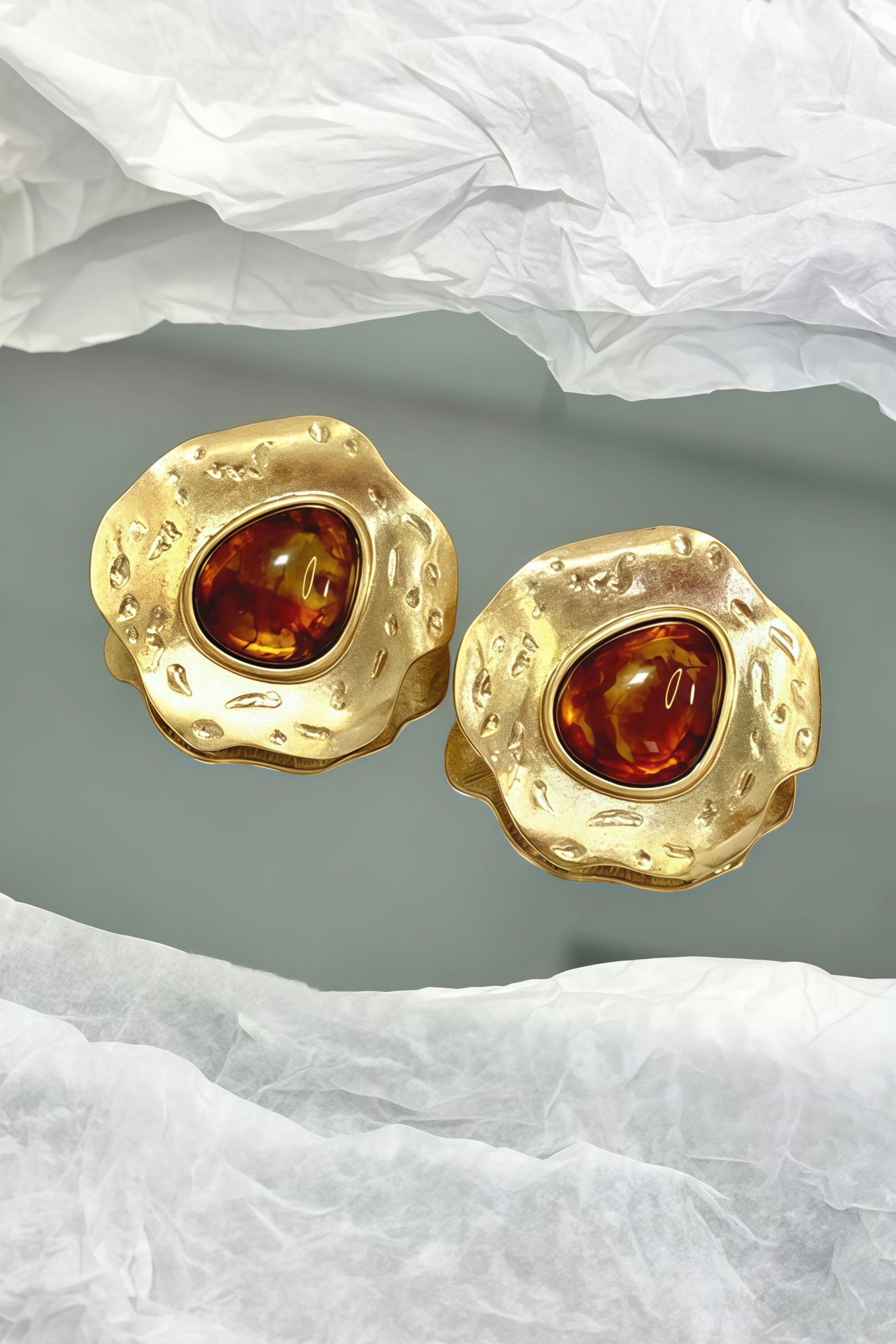 Inspirados nas formas orgânicas do metal fundido, estes brincos combinam o calor do âmbar com o brilho dourado de um design escultural.
