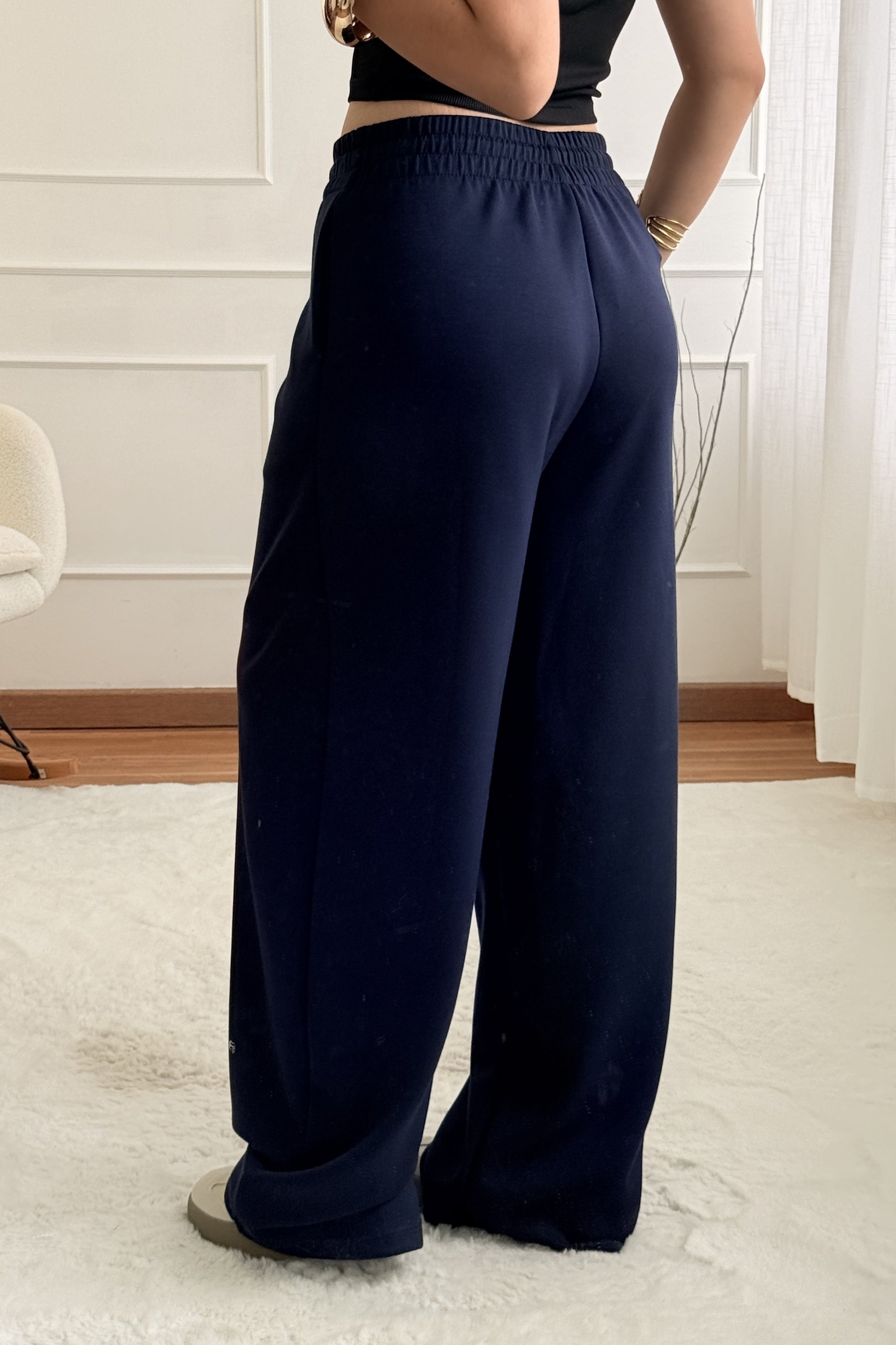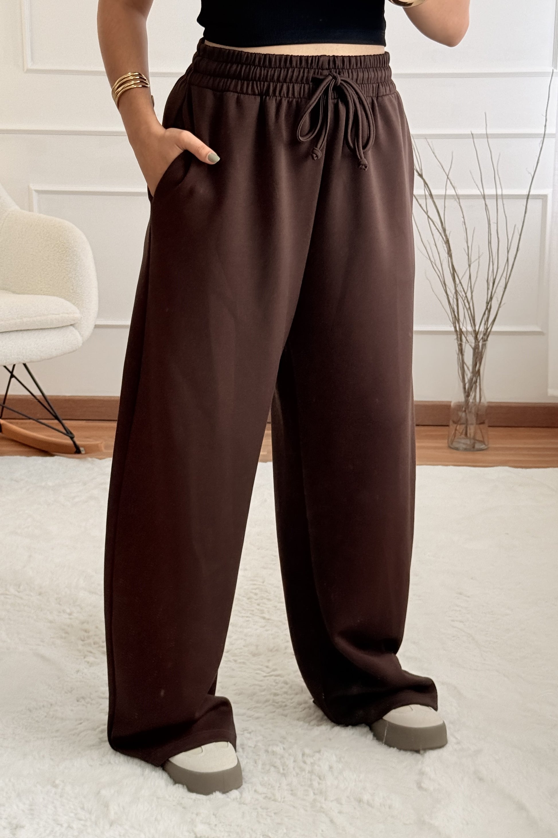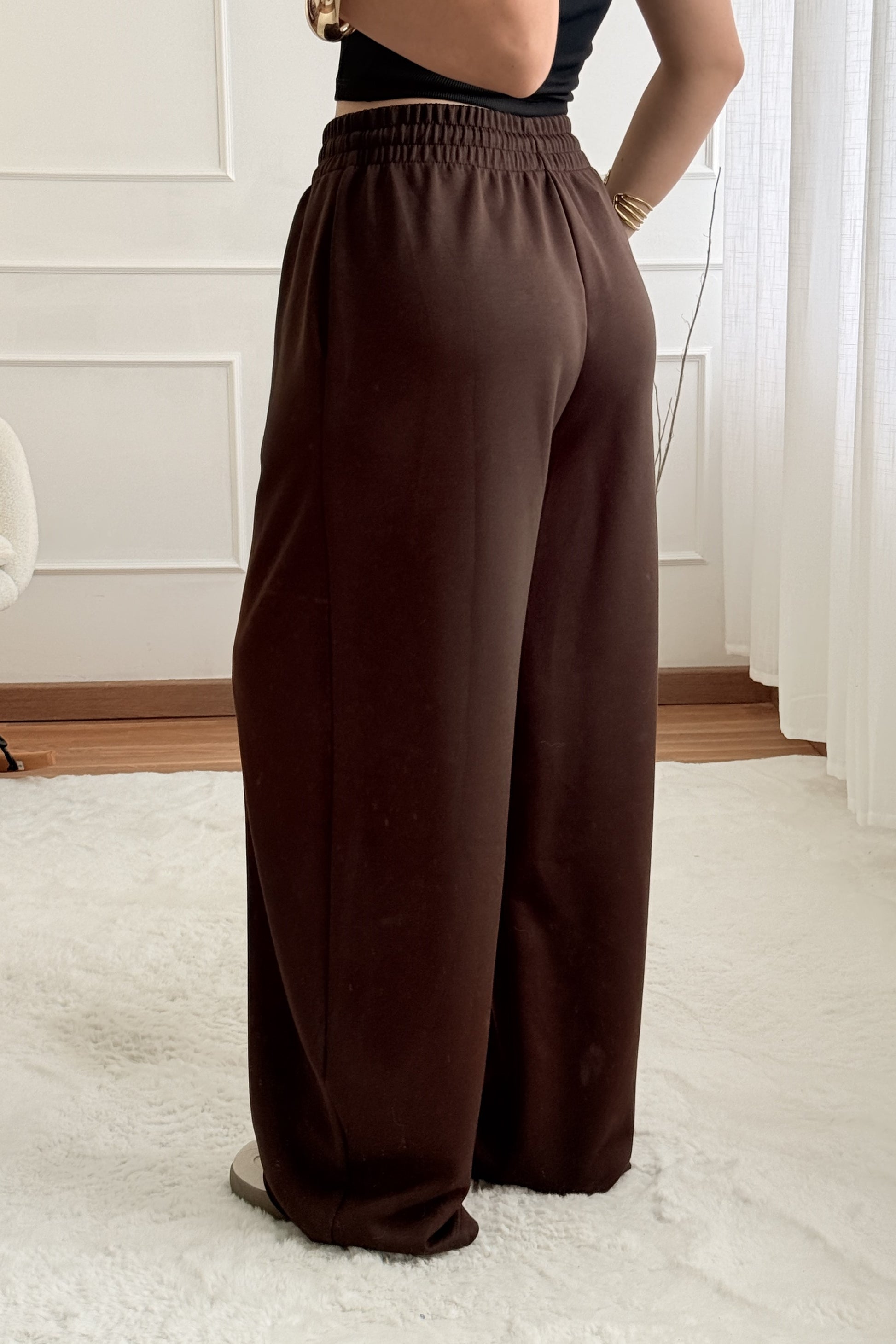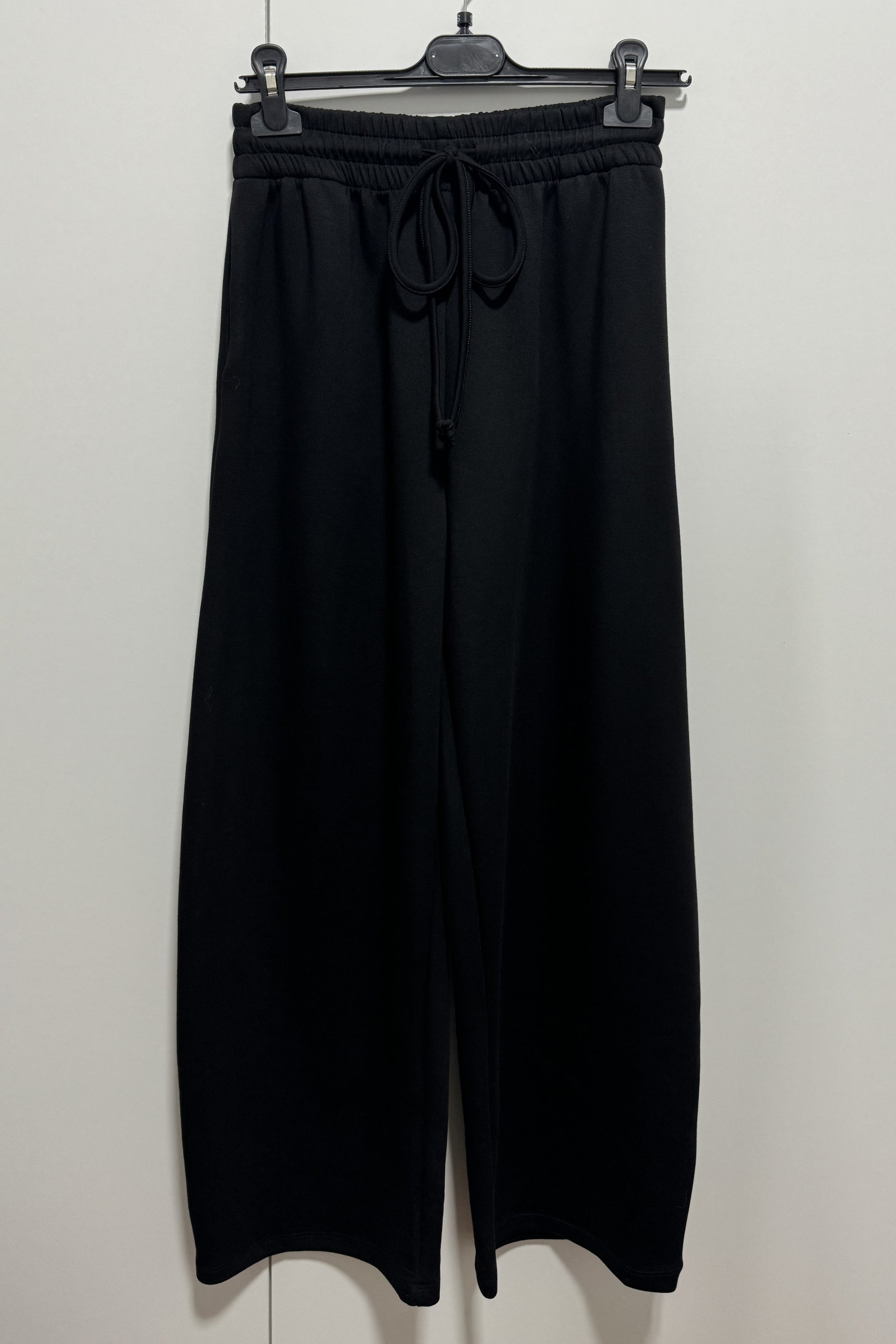 Calças cintura elástica. Possuem cordão ajustável na cintura. Corte de vestibilidade larga, disponíveis nos tamanhos S/M e M/L.