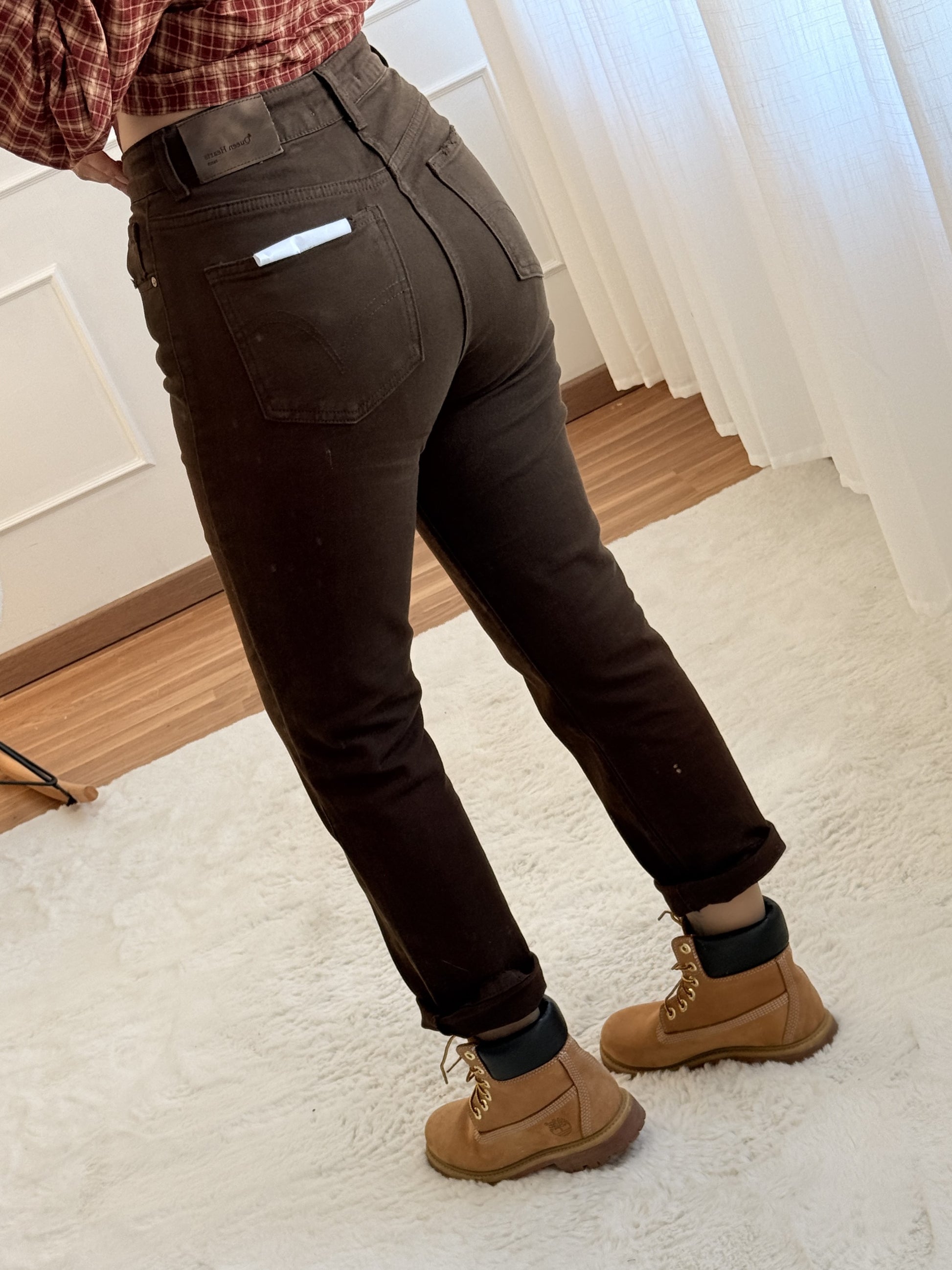 Calça de ganga castanha QUEEN HEARTS