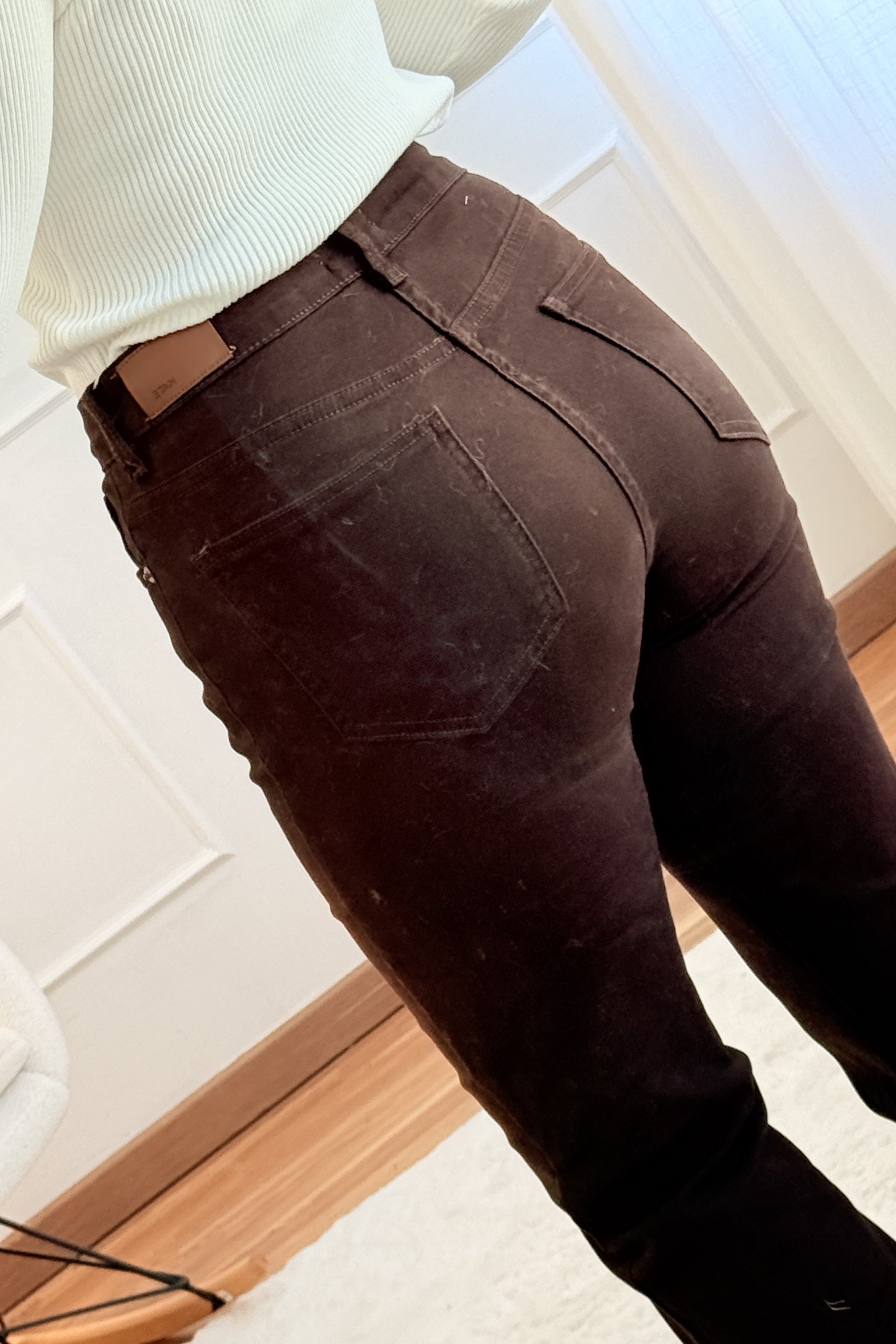 Calças em ganga castanha, modelo flare, com tecido elástico que proporciona conforto e um ajuste perfeito ao corpo. Ideal para criar looks modernos e alongar a silhueta.