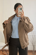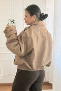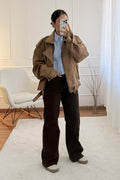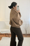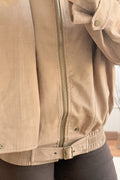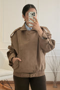 Casaco oversized em camurça com corte descontraído e design contemporâneo. Inclui fecho de correr assimétrico, bolsos frontais funcionais e lapelas estruturadas. O cinto ajustável na cintura permite personalizar o ajuste e acrescenta um toque moderno.