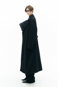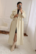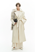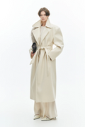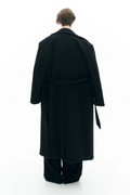Casaco com gola de lapela e mangas compridas. Ombros estruturados com enchimento para maior definição. Fecho de abotoamento duplo com botões e cinto regulável na cintura. Interior totalmente forrado. Corte regular