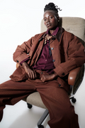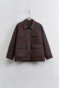 Casaco confecionado em tecido de mistura de algodão. Apresenta padrão estampado e detalhe de gola de lapela em pele sintética. Possui amplos bolsos frontais e fecho frontal com botões. Interior forrado. Modelo de corte oversize, disponível nos tamanhos S/M e M/L.