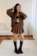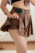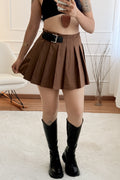 Com inspiração no estilo colegial retrô, esta saia plissada de cintura alta traz sofisticação e movimento à sua produção. O detalhe da fivela e o corte estruturado valorizam a silhueta e conferem um toque de personalidade.