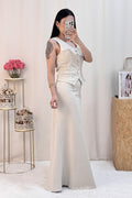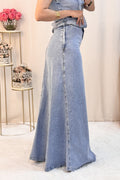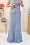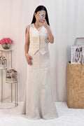O colete estruturado e a saia fluida criam uma combinação incrível! 🤍