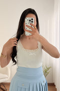 Top versátil com um pequeno laço na parte da frente do decote