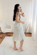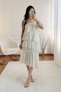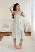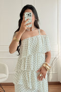 Este vestido de alça única apresenta um elegante design assimétrico, realçado por um delicado estampado de estrelas que acrescenta um toque de encanto e originalidade. As camadas fluidas criam movimento e leveza, enquanto o corte solto proporciona conforto e sofisticação.