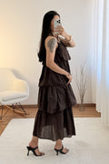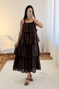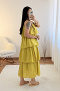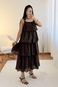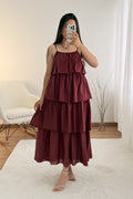 Vestido leve e confortável com corte solto e camadas. Ideal para o dia a dia ou momentos descontraídos.