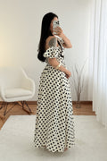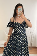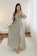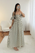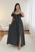 Vestido longo ombro a ombro com bolinhas AZAKA