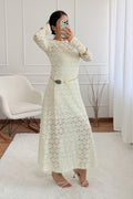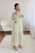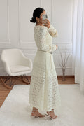 Este vestido feminino em renda transmite romantismo e sofisticação em cada detalhe. O design de manga comprida proporciona delicadeza, enquanto o corte fluido cria uma silhueta esguia e elegante. O padrão rendado dá um toque refinado e intemporal, perfeito para ocasiões especiais.Ideal para casamentos, festas, eventos formais ou jantares elegantes,