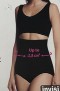 A cueca modeladora de cintura alta foi desenvolvida para realçar a silhueta, proporcionando um efeito redutor até -2,8 cm na zona abdominal.