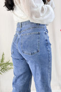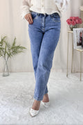 Los jeans tienen un cinturón en la cintura con diseño de trenza.
