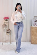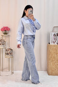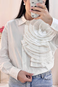 Una camisa súper elegante con una gran flor en el lateral 🌸
