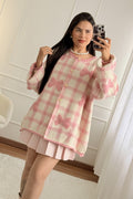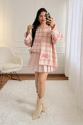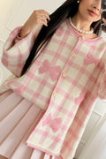 Abrigo de punto de rayas rosas con lazos súper lindos.
