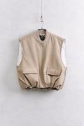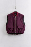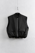 Colete acolchoado. Ligeiramente crop top. Possui bolsos frontais. Fecho frontal com fecho de correr. Corte regular, disponível em tamanho único.