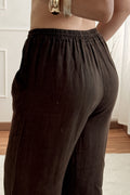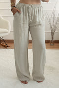 Pantalones anchos de lino con cinturilla elástica. Comodidad y sofisticación para el verano.