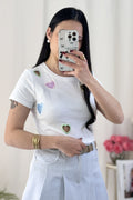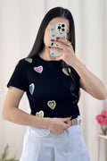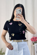 Camiseta con detalles de corazones calados, ¡súper delicada y llena de encanto!