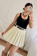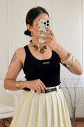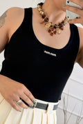 Top canelado em viscose, inspirado no estilo Miu Miu. Modelo ajustável com cava a cava elástica para um caimento confortável e moderno.