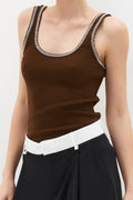 Top de tirantes de algodón acanalado con bordado.