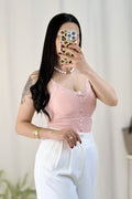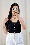 Top versátil con detalles de encaje, perfecto para llevar solo o como capa.