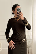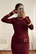 Vestido bordô com fivela