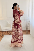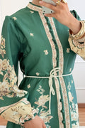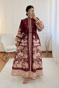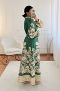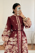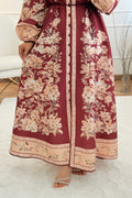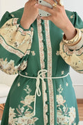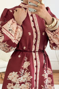 Este vestido longo é a combinação perfeita entre charme clássico e elegância moderna. Apresenta uma estampa floral elaborada, gola subida e mangas balão que conferem volume e sofisticação. O corte reto é complementado por um cinto separado, permitindo definir a silhueta conforme desejar.