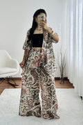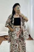 Camisa tipo blazer com estampa paisley e corte fluido.