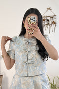 Top texturizado com brilho. Reversivel. Laços nos botoes. Na duvida do tamanho escolher o tamanho maior.