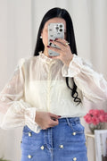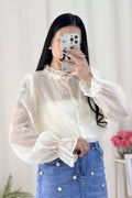 Blusa leve e romântica, com transparência e bordados florais 🌸