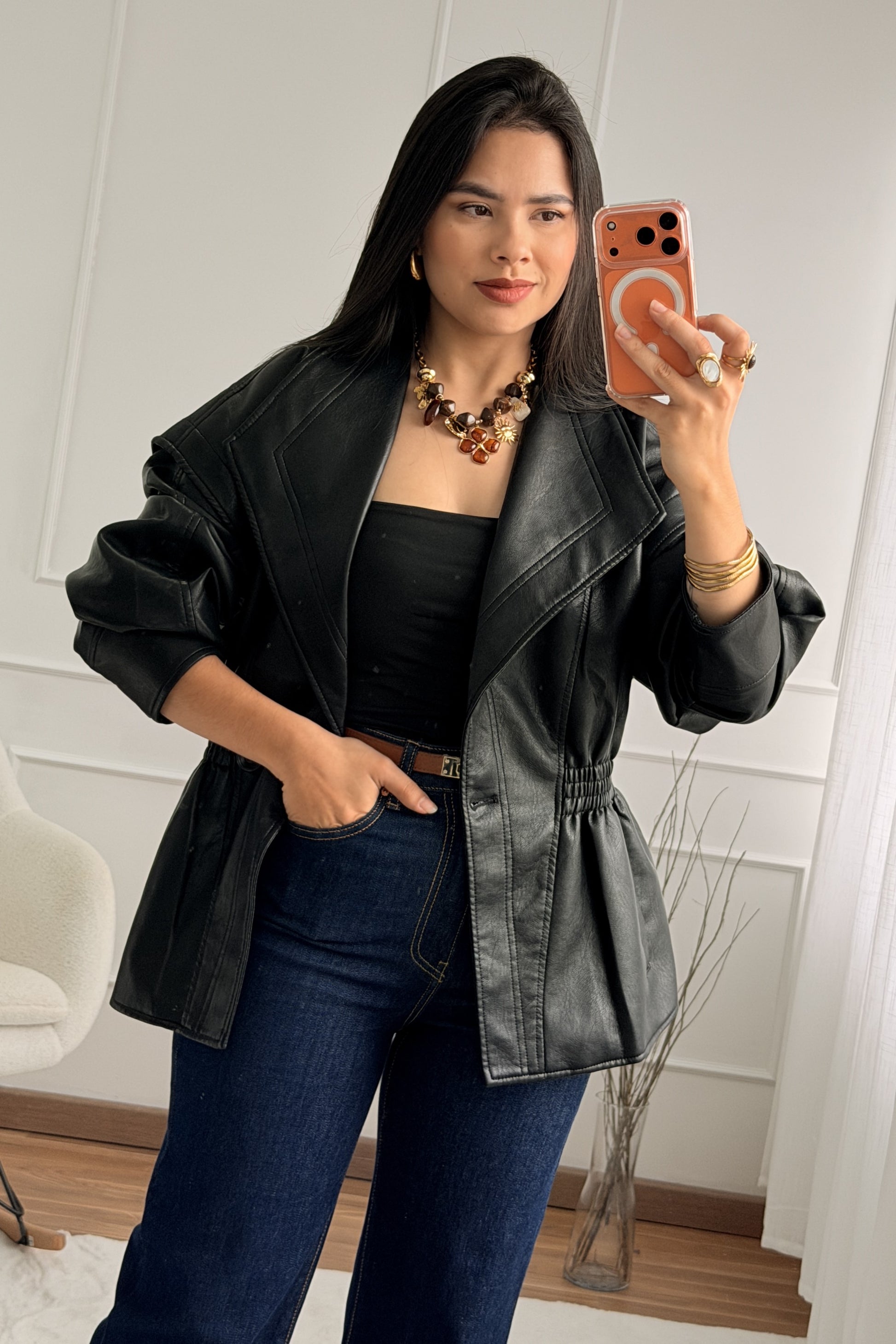 Pormenor de elástico na cintura que cria o efeito de cintura mais fina