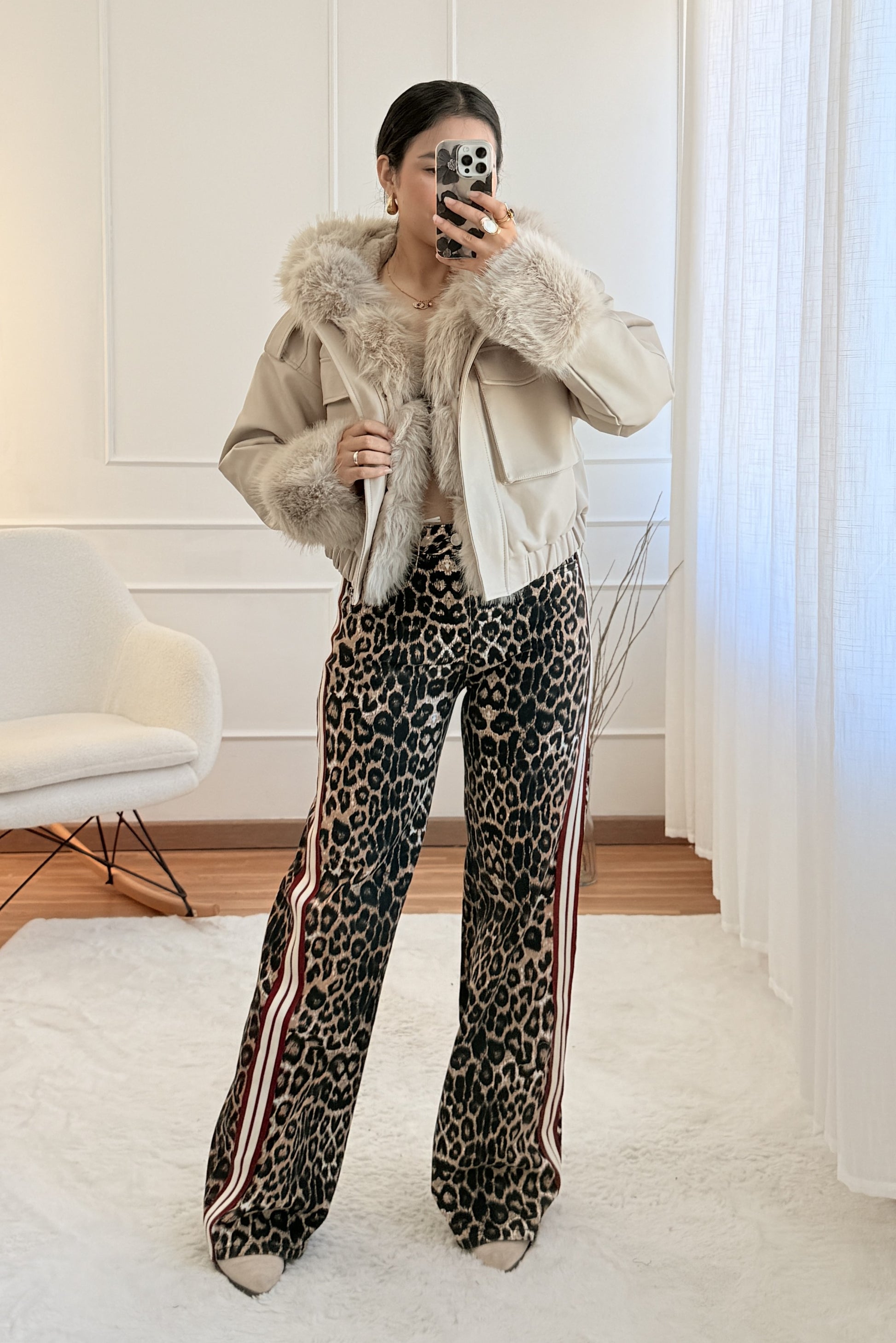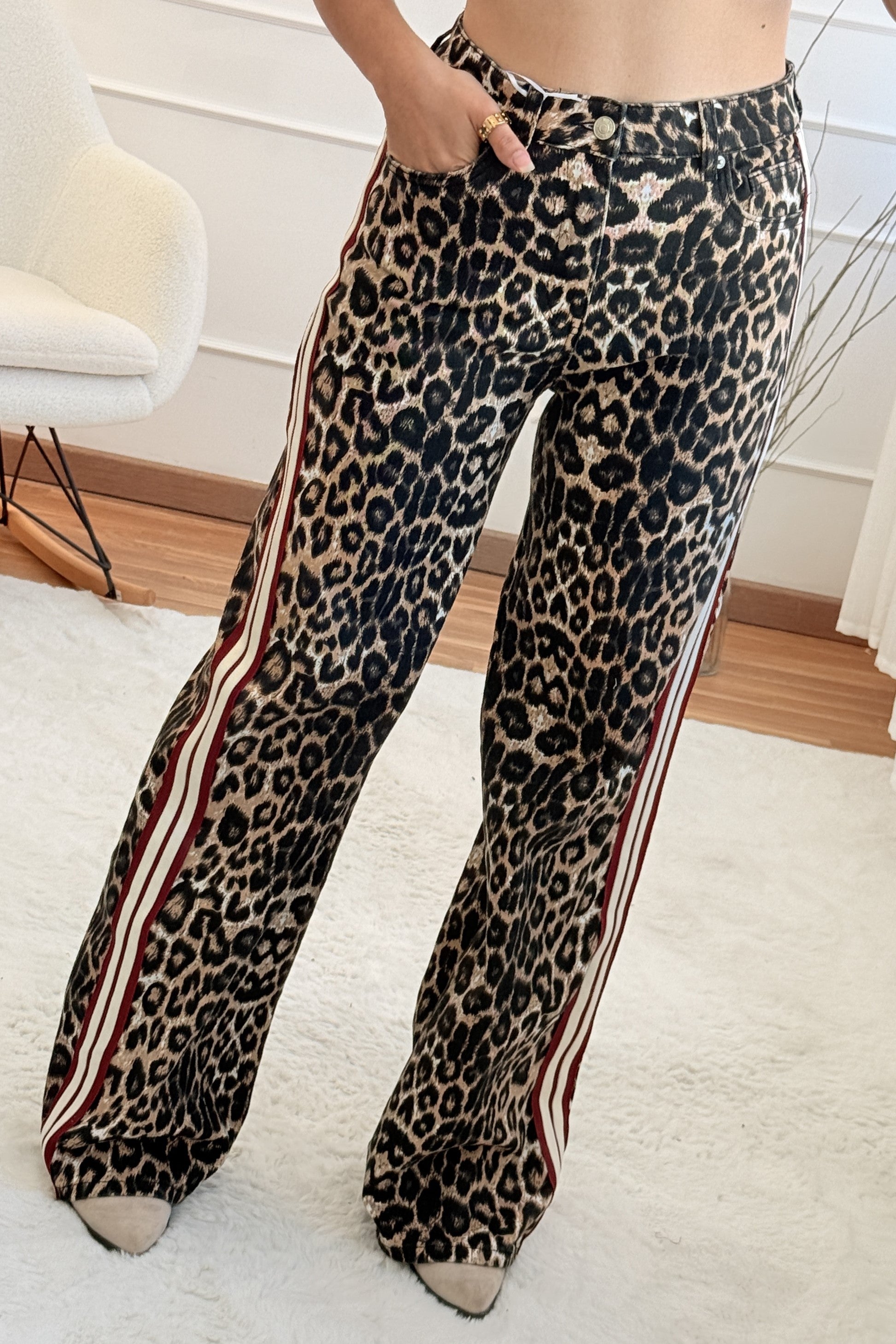 • Detalhes: estampado leopardo + faixa lateral bicolor