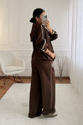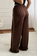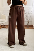 Estas calças apresentam cintura elástica que se ajusta ao corpo, fita lateral ao longo das pernas e logótipo bordado na parte superior.