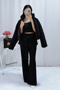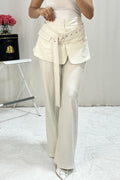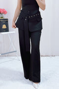 Estas calças são a escolha perfeita para um look sofisticado e moderno. O design exclusivo com detalhe de cinto e bolsos dá um toque especial ao visual, garantindo estilo e conforto.