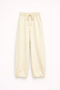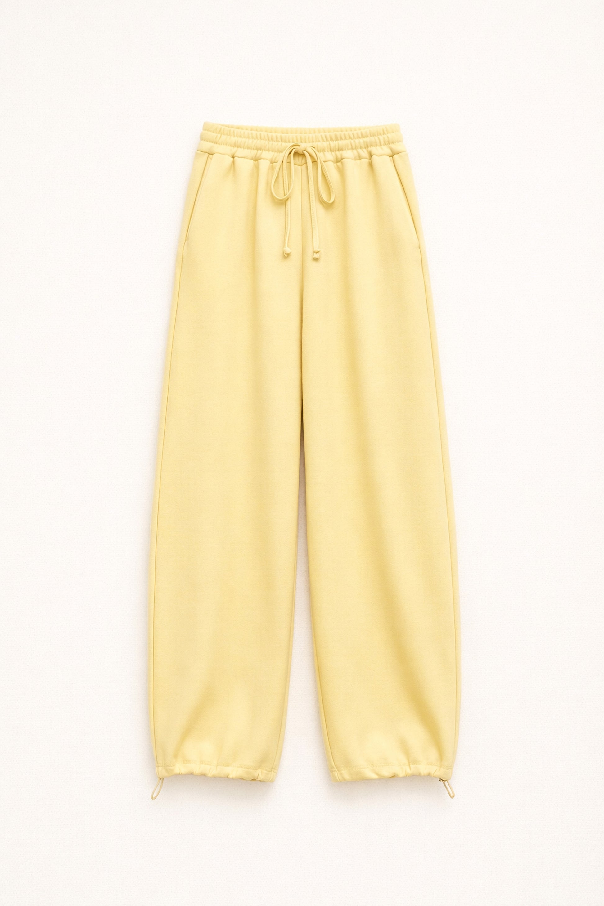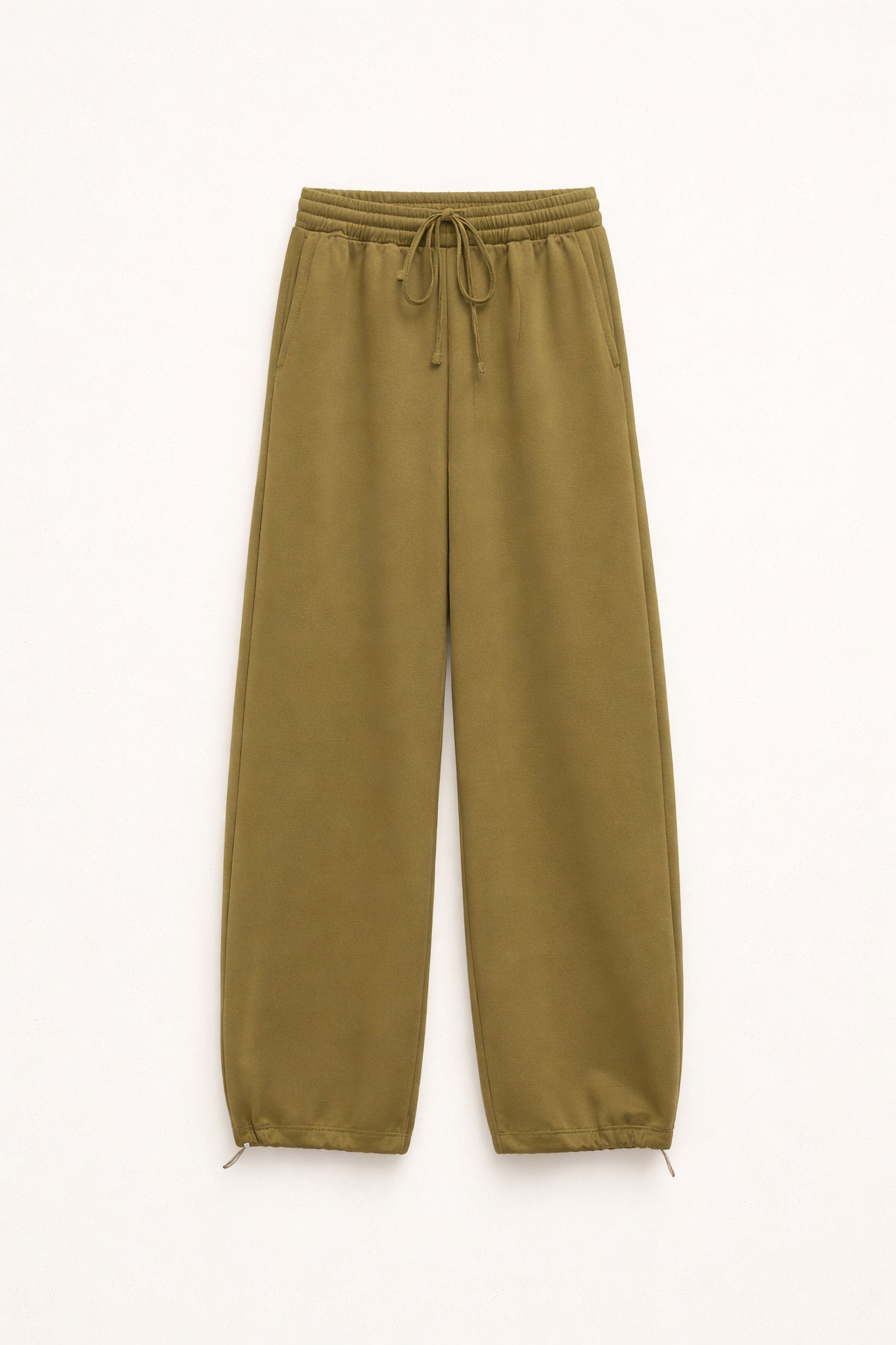 Cintura elástica com cordão ajustável.