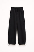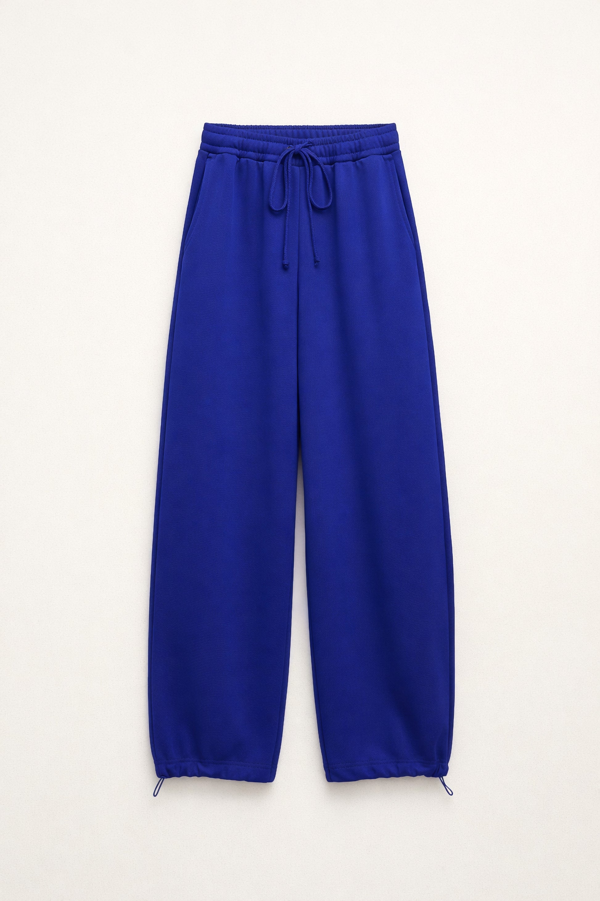 Perna larga com bainha elástica.