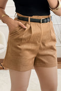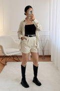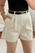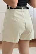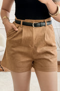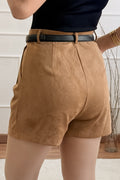 Calções em camurça com corte confortável e design contemporâneo. Incluem um cinto de pele preto removível que acrescenta contraste e estilo. O fecho discreto e o caimento suave garantem conforto durante todo o dia.