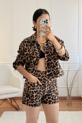 Estes calções femininos de cintura alta com estampa de leopardo são a definição de ousadia e elegância urbana. Com modelagem ajustada que valoriza a silhueta e bolsos funcionais, essa peça é perfeita para quem busca conforto sem abrir mão do estilo.