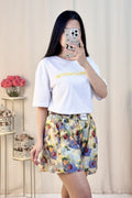 Calção com cós elástico e estampa de estilo pintura a óleo.