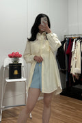 Camisa comprida com bordados em cima e 2 bolsos.