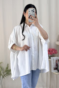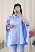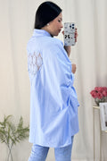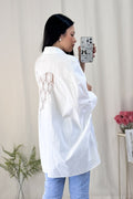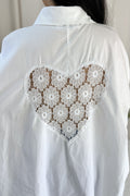 Camisa de manga morcego, com um padrão de coração vazado em renda nas costas.