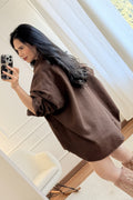 Camisa em corte oversize, confortável e versátil. Detalhe de botões grandes com bordado. Serve do S ao XL.