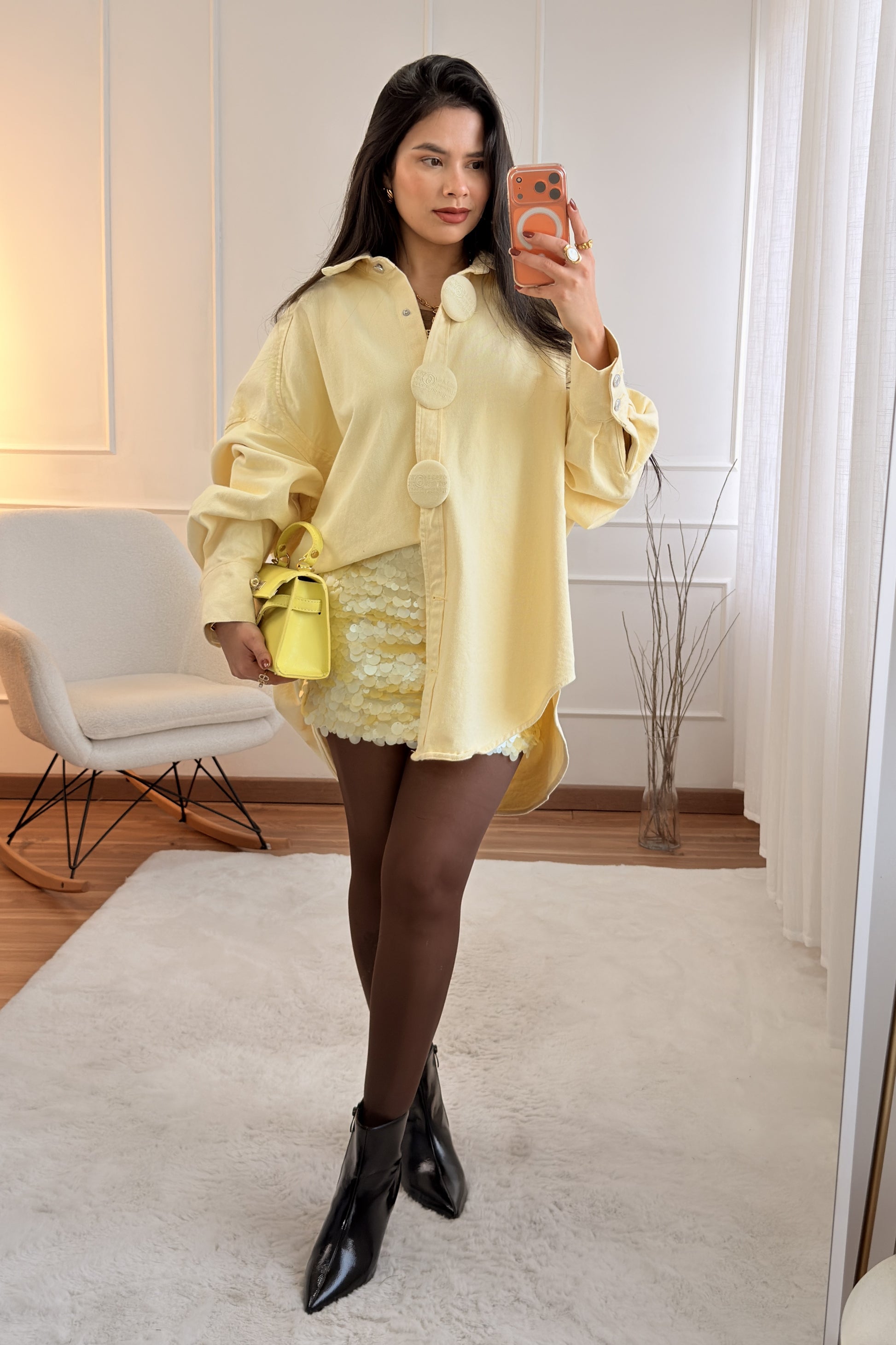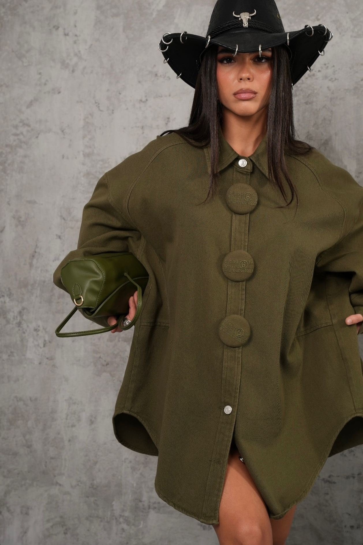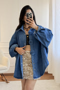 Camisa oversize com botões bordados