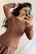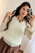 Camisola em renda, totalmente adornada com pequenas lantejoulas. Possui forro interior, detalhe franzido lateral e boa elasticidade, garantindo conforto e ajuste perfeito.