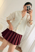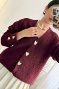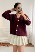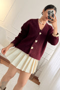 Cardigan macio e aconchegante, com botões dourados em formato de coração. Tamanho único, ideal para um look romântico e elegante.