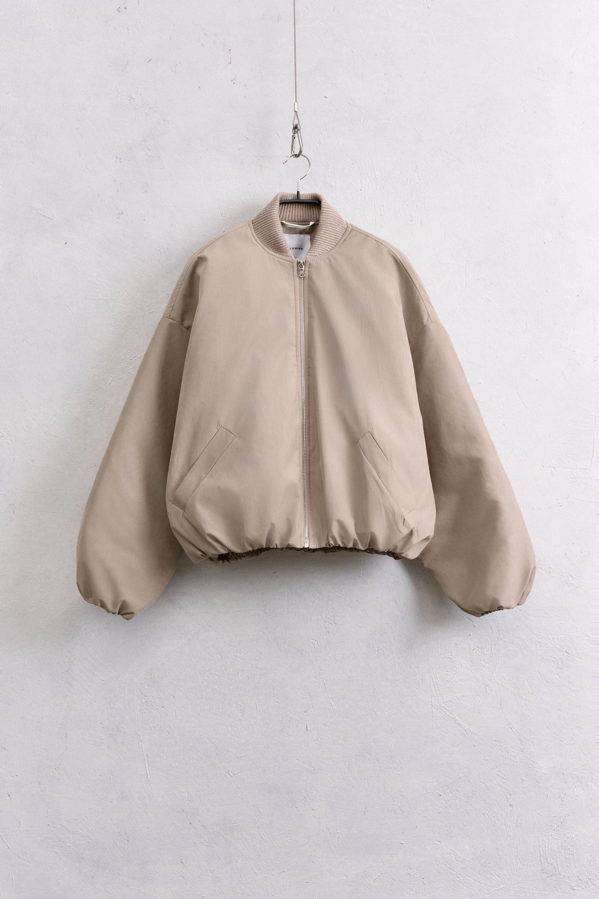 Casaco bomber. Franzido na bainha. Bolsos frontais. Fecho frontal com fecho de correr. Interior forrado. Corte regular, disponível em tamanho único.