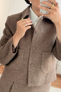 Este casaco curto feminino combina elegância e versatilidade. O corte estruturado realça a silhueta, enquanto os botões frontais adicionam praticidade e estilo clássico. Feito em tecido confortável com textura discreta,