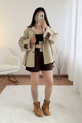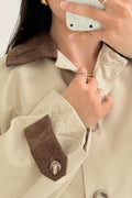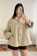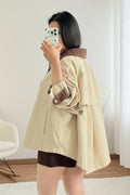 Casaco estilo gabardina, corte oversized com gola e punhos em veludo cotelê. Clássico e moderno para a meia-estação.