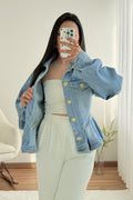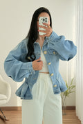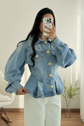 Casaco de ganga com corte único, oferecendo um design exclusivo e arrojado.